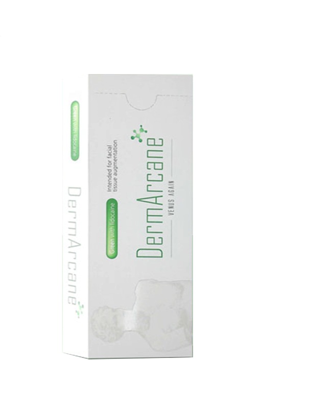 DERMARCANE GREEN (درم آرکان سبز) یک فیلر پوستی بسیار موثر است که برای کاهش ظاهر خطوط ریز، چین و چروک و سایر نشانههای پیری طراحی شده است. این فیلر تزریقی از اسید هیالورونیک و لیدوکائین تشکیل شده است. هدف اصلی آن بازگرداندن حجم و رطوبت به پوست است تا پوست جوانتر و درخشانتری داشته باشد. استفاده از DERMARCANE GREEN برای ناحیههایی مانند پیشانی، گونهها، چانه و دیگر مناطق صورت استفاده می شود که نیاز به حجم و حجیمتر شدن دارند.